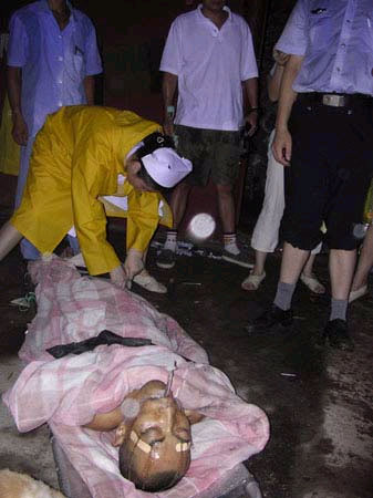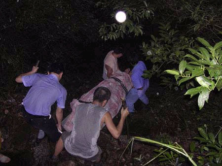 当救护车拉着警笛,飞快赶到白云洞山下时,医生们抬头一看,上山的路比想象的还要恐怖:山道上到处是湍急的溪水,山路几乎全被冲毁了。他们一边拿着担架和急救药箱向山上赶去,一边和急救中心联系,请求110增援。