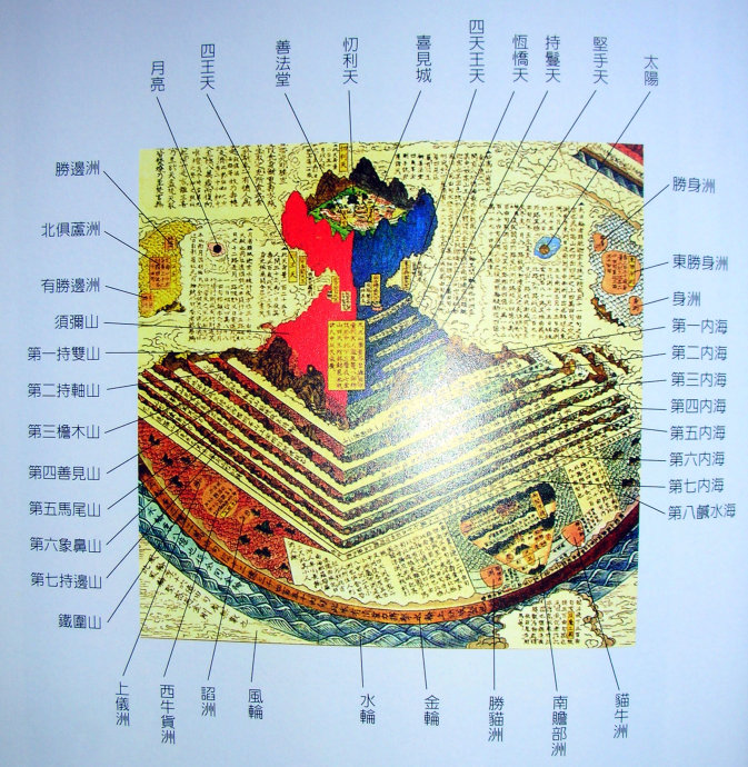 2.佛经中指出,地球上有四大海洋,分隔陆地。地球上的大陆都是北广南狭,故阎浮提人的脸形也与之相仿,是瓜子脸,下巴尖。见《楼炭经》等。