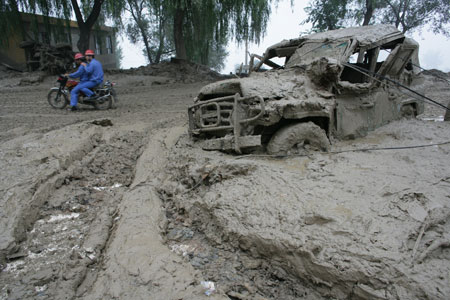 新塔矿公司的办公楼被完全埋在了泥浆之下,大约60名员工,生还的只有少数。而在云合村村民居住的不少小平楼也泡在泥水中,道路两旁的椿树,同样被冲得七零八落。