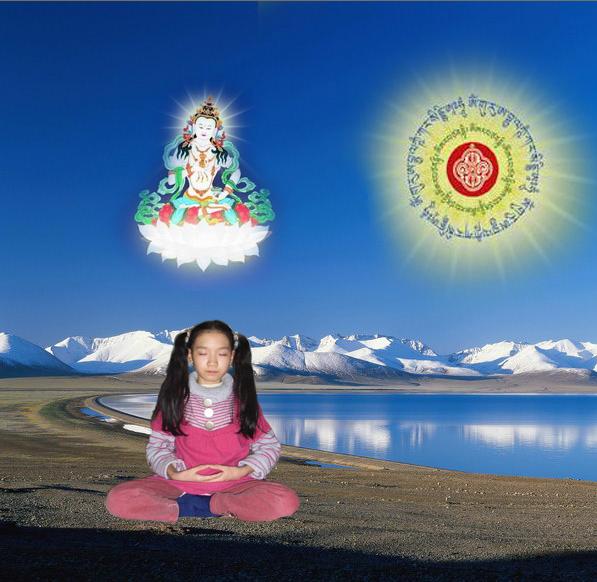 与上师分别以后,慈韵不止一次地跟妈妈说她特别想念上师。但是因为种种原因,她没有机会再见到上师达真堪布。于是她开始做图片,把自己对上师的思念融进了她制作的上师的法像中。06年上师带弟子去拉萨,在布达拉宫,上师用释迦牟尼佛12岁等身像的法衣给弟子们做加持, 慈韵将这个图片上其他师兄的影像换成了自己在接受上师的加持;她把图片做成了自己与上师同坐在莲花上!