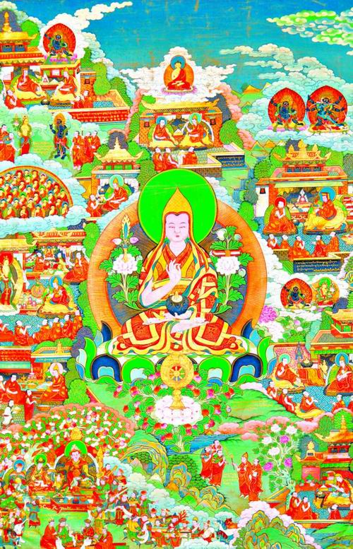 结尊仁达瓦看了,谦让未遑地说:“我无此德,不敢当,这一偈颂你倒可当之而无愧。”于是结尊仁达瓦将原颂末后二句更易人名,改为赞叹宗喀巴大师。颂云: