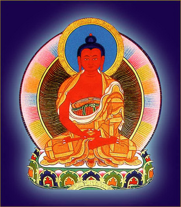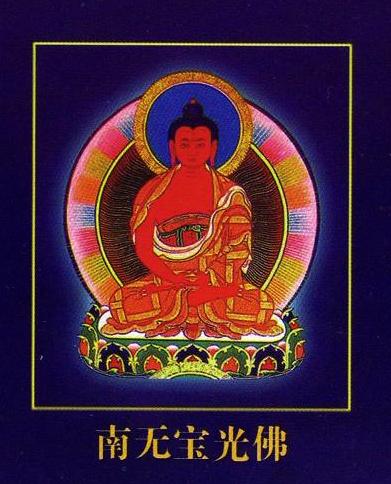 东方大宝世界之宝光佛,身红色,两手结定印。顶礼此佛可消除二万五千大劫罪障。