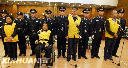 12月31日,原三鹿集团四名高管在石家庄市中级人民法院出庭受审,他们分别被控生产、销售伪劣产品罪等罪名提起公诉。这四人分别是原三鹿集团董事长田文华、原三鹿集团副总经理王玉良、原三鹿集团副总经理杭志奇、原三鹿集团原奶事业部经理吴聚生。等待他们的,是高悬的法律利剑和道德谴责。到场的各路媒体记者、问题奶粉患儿亲属、律师等,都以复杂的心态静候2008年最后一天的这场具有历史意义的审判。