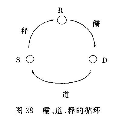 这种儒、道、释的循环往复(如图38),充分表现中国人的包容性,能够把复杂、繁多的东西,统整起来而毫不矛盾。