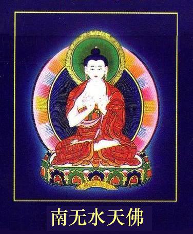 西方明亮世界之水天佛,身白色,结说法印。顶礼此佛可消除杀定成正觉者之罪障。