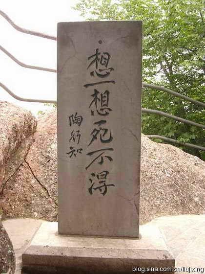 简单朴实的六个字,居然挽救了许多生命,可谓功莫大焉。阅尽人间风雨的燕子矶如今依然守望着长江,当年陶行知立的木牌因岁月沧桑已不复存在,我们现在见到的是后人复立的石碑,但上面镌刻着六个大字“想一想死不得”,依然是陶行知先生的手迹。(文/刘继兴)