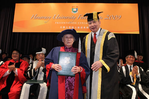 2009年9月22日,香港大学授予她“荣誉院士”。颁奖台上,这位82岁的普通老太太被称作“以自己的生命影响U-Hall(大学堂)仔的生命”,是“香港大学之宝”。