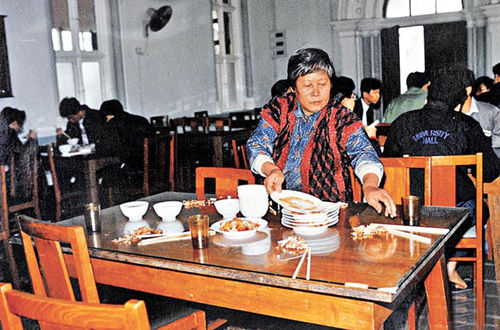 然而自从上世纪70年代安装心脏起搏器以来,三嫂再也无法继续在厨房工作了,这位五个孩子的母亲从此转做清洁工。男生们历来喜欢在饭堂开派对,每每狂欢到凌晨两三点,尽管这早就过了三嫂的下班时间,但她总是等到派对结束,再独自进去清理地板上的啤酒、零食和污渍。那个在凌晨的饭堂里独自拖地的驼背老人背影,让许多学生“不敢忘记”。