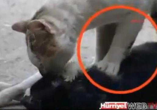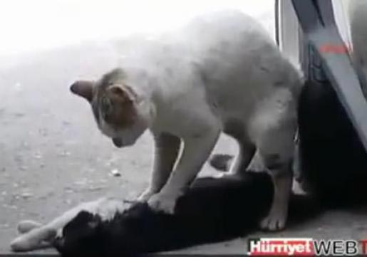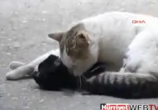 一只流浪猫在土耳其当地的一个停车场被汽车撞倒后,无助地躺在地上。它的同伴随后跑来,试图对它进行抢救,它还用爪子对同伴进行了“心脏按压”,在整整2个小时的时间里,它就这样断断续续地竭力抢救着同伴。在进行“心脏按压”的间歇,小猫还用头轻轻拱一拱倒地的同伴,希望对方能有反应,偶尔它也用舌头舔一舔同伴的嘴巴和鼻子。感人至深的场面引来很多行人驻足观看,但小猫始终不允许有人靠近受伤的同伴。2个小时后,一名当地的兽医闻讯赶来,但是已经太晚了,受伤的小猫最终还是离开了这个世界。(苏莱娅)