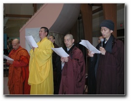 这是一个简单却庄重的披剔仪式,参加庆贺观礼者二十余人,Dow女士她虔诚沈寂地跪在和尚及教授阿阇黎的面前,接受问遮。她的家人也特地从圣路易市赶来庆贺,因此,她信心百倍,凝神谛听。