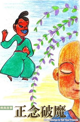 当时魔王波旬知道了,便兴起恶念:“这位吉离舍瞿昙弥比丘尼,每天早晨都会到舍卫城中乞食。回到精舍后,便到安陀林中的树下静坐,一直到隔天早上都能定境现前,我可前去破坏梵行,阻其修道。”于是魔王化作相貌庄严的男子,前往吉离舍瞿昙弥比丘尼静坐之处,说道:“你是不是丧子呢?为何满脸忧愁,独自坐在树下,为何不与我共享欢乐呢?”