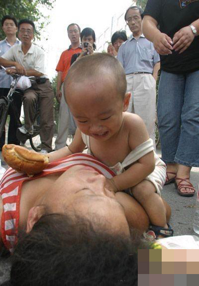 因为丈夫生病,只好卖儿救夫。 母亲体力不支晕倒,小孩子哭的样子让人心酸得难受。
