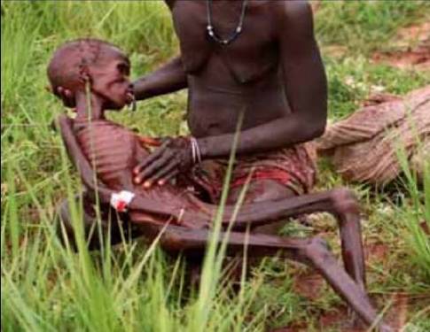 家苏丹南部已经被战争和饥荒折磨得惨不忍睹,国际人道救援机构在苏丹境内建立了“苏丹生命线组织”,但还是无法面对这么庞大的饥民群。一个虚弱的站不起来的饥民,爬进一个紧急避难所,他完全是一副活着的骨头架。 如是因,如是果,我们现在的人若是不能好好珍惜福报,悭贪不肯布施,肆意浪费,杀生食肉,那么来世果报也跟他们差不多,可能比他们还惨。