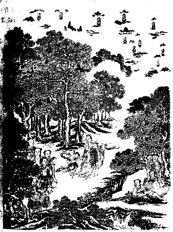 这时,善财童子一路上随顺思惟着菩萨的正教和清净妙行,渐渐向南游行,到达那罗素国,就各处寻访毗目瞿沙仙人。善财童子见到一处大树林,有无数的树木,庄严着此林,有种种不同的叶树,枝叶扶疏,伸展护荫。……