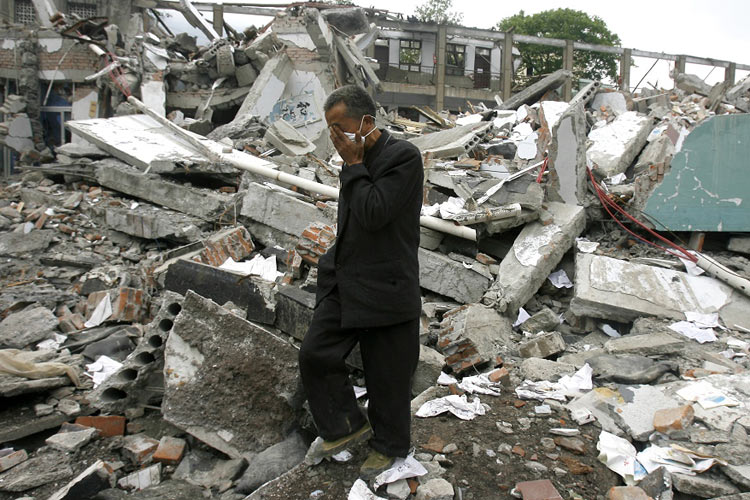 72 1933年叠溪地震 1933年8月25日15时50分30秒,中国四川茂县叠溪镇(北纬32.0度,东经103.7度)发生震级为7.5级的大地震。此次地震,震中烈度10度,叠溪镇被摧毁。震前该地异象迭出:犬哭羊嘶,蛇出鼠惊,乌鸦惨啼,母鸡司晨。地震发生时,地吐黄雾,城郭无存,有一个牧童竟然飞越了两重山岭。巨大山崩使岷江断流,壅坝成湖。1933年10月9日19时,地震湖崩溃,洪水倾湖溃出,霹雳震山,尘雾障天,造成下游严重水灾,仅灌县境内捞获的尸体就有4000多具。叠溪地震和地震引发的水灾,共使2万多人死亡。