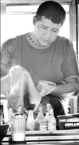 1981年萨尔瓦多发生内战,17岁的卡尔洛斯非法入境来到美国。刷油漆,打小工,最终拿到了合法身份。当华盛顿街边摊贩还不是很流行的时候,卡尔洛斯就在1990年分期付款购置了这个有执照的食品车,在华盛顿街头的法拉格特广场卖起了热狗,后来又改成了家乡特色的卷饼。通常他一大早从马里兰州盖城的家里出发,6点钟到城里的摊车仓库把食品车拖出来,每个周一到周五的7点整,17街和K街路口卷饼摊上的咖啡就冒起热气了。