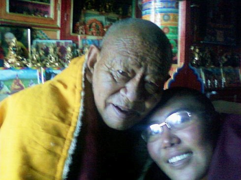 一日,一位年轻的女居士拜见空行母。进门敬献哈达过后,便用生硬的语气问上师:“我在网上听说过关于你超度亡灵的消息,(详情见本博中《超度亡灵——卓德巴姆空行上师汉地行》)我想问你一个问题:你认为地狱真的存在吗?”空气一下子凝固了。只见上师从容的反问:“你早晨醒来之后,晚上做过的梦还在不在?”。那位女居士不说话。上师接着问:“你的吃饭穿衣和你的梦,哪个是真实的呢?”就像亚青寺诸位大圆满上师总是用一句话直指心性一般,上师的甚深智慧再次令我们震撼,也令那位不速之客深深的折服,后来她又来拜见上师,一改先前的傲气,恭恭敬敬的皈依了空行母上师。