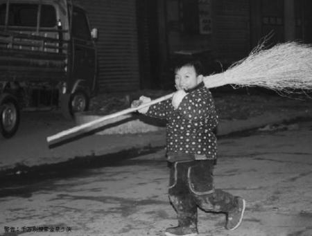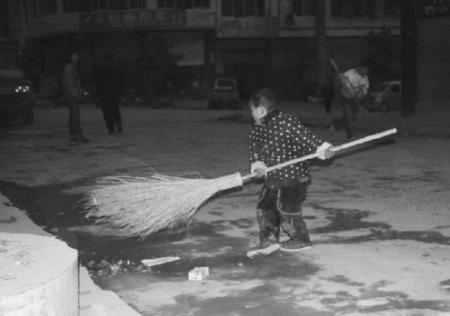 “一来确实需要有个帮手,二来怕他一人在家不安全,带在身边要踏实些。”“第一次他觉得新鲜好玩,扫了几分钟,就跑到一边儿玩去了。”慢慢习惯后,他天晴下雨都跟在妈妈身后,扫了半年,动作有板有眼,扫得也干净。但毕竟是小孩子,扫个十来分钟,就会去玩一会。