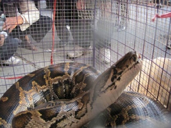 因安全起见,当时蛇笼用了两层铁丝网。师父用铁钳用力一点点掐断。。。大家很紧张地守着笼子,担心这个庞然大物没耐心。。。