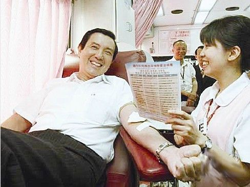 美国牛肉风暴缠身,支持度受到冲击,马英九跑去捐血,他说,他的血型是O型,是捐血中心需求最高的血型。每次捐完血,他都有一种很奇特的温馨感。看着街上人来人往,熙熙攘攘,他常想,其中说不定有人曾经输过他的血,甚至因为及时输血而保住一命。这种感觉很温馨,让他觉得和这块土地以及土地上的人民,有一种很真实的、血脉相连的关系。也因为这种温馨的同胞感,让他捐了24年的血。