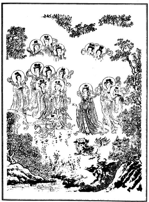这时,安住地神和百万地神,放大光明,遍照三千大千世界,也普令大地同时发出震吼。……一切叶树,都同时生长。一切华树,也都共同开放。一切果树,无不成熟。一切河流,递相灌注,一切池沼,盈满香水。又雨微细的香雨,遍洒道场的地面。风来吹去宝华,普散地上。又有无数音乐,同时俱奏。……有百千多地下伏藏①,从地自然涌现。