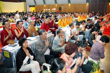 因此,我希望在座的佛教徒,尤其是一些年轻人,学佛不能只为求福报,求佛保佑自己身体健康、家庭和合、财源滚滚、官运亨通……其实,就算佛陀加持你得到了这些,人生只有几十年,为了追求这短暂的快乐而耗尽一辈子,值不值得呢?所以,作为一个佛教徒,理应为了今世和来世而修行、为了自己和他人而修行。如果没有这样,那根本方向就搞错了。