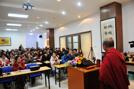 能请到这样一位具足内证功德和广大慈悲心的仁波切来开演佛法,既是我们南大人的胸襟,也是南大人的殊荣。南大向来有“求真务实”的传统、“为己之学”的理念,我们相信,所有学问最高的究竟意义,在于获得智慧和生命境界的提升。南大有“知行楼”,南大人更有“知行合一”的传统和追求,所以,让我们以求实的精神和敞开的心胸来聆听佛法甘露,用自己的身心来真实体会书本知识是如何转为鲜活的生命体验,并从中产生智慧的。