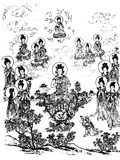 夜神回答说:“善男子,这种解脱门的名字,叫做‘教化众生令生善根’,因为我已成就这种解脱门的缘故,觉悟一切法的自性,都是平等的。入于诸法真实的本性,证得无所依的法。……也能明了通达青黄赤白的自性,都不实在,无有差别。在念念中,恒常示现种种色相身④,充满十方世界。令一切众生愿意什么,便有什么感应。应时调伏一切众生,舍弃不善业,住于善行。