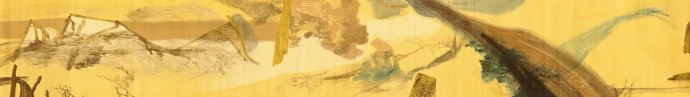 某日,他禅坐良久,反复念诵心经,“……色即是空,空即是色……是故空中无色,无受想行识,无眼耳鼻舌身意,无色身香味触法,无眼界,乃至无意识界……”其时,突觉脑中有灵光乍现,豁然如得神助,乃长身而起,横拖笔,狂洒墨;疏朗点染,笔随意到;浓淡率性,韵寄空灵!3小时后,戛然收笔,一幅长20米,宽3米的巨幅山水绝作之主体横空出世,取名曰《众妙之门》。
