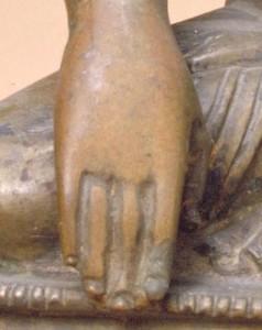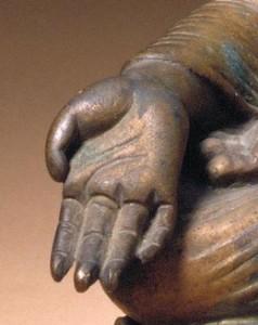 佛像的各种手势代表佛像的不同身份,表示佛教的各种教义,是具有印度特点的人体语言,表达的含义极为丰富。常见的有说法印、无畏印、与愿印、降魔印、禅定印5种,即“释迦五印”。手印形式可有多种变化,尤其是密教手印多达几百种,变化莫测,见的有智拳印、期克印等。