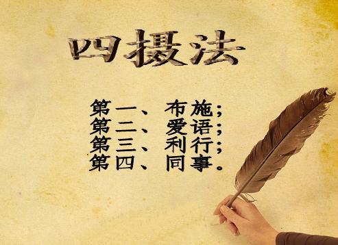 四摄法里头的布施,它跟六度的布施不一样。四摄法的布施是多请客、多送礼。夫妻两个常常请客,彼此送礼,多多交流,利益对方,这不是好事情吗?人与人的关系建立在这个地方。