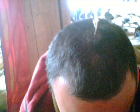我们先来看一张照片,是我的同门师兄Z今年春节期间在昌列寺修破瓦法成功开顶(头上有个洞,并插了根吉祥草。更多照片见希热多吉博文《罕见的破瓦法开顶照片》)后的照片(刚回到北京):