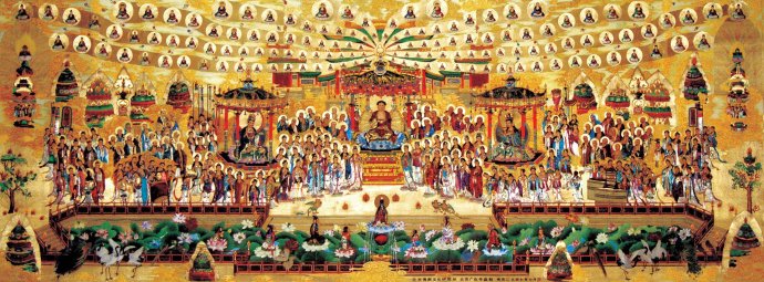 从显宗的角度讲,释迦牟尼佛已示现涅槃,佛法住世五千年(8)之后,终有一天会隐没消失。但从密宗的角度而言,其实佛陀没有出世与涅槃,正法也没有兴盛与隐没,一切都是恒时存在,这就叫“本来常有相续转法轮”。