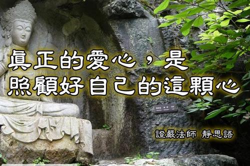 “凡人每常与自己所爱的人过不去,处处计较,愈是亲近、亲密的人,愈是熟不拘礼,总认为‘别人可以不了解我,你怎么可以不了解我?别人可以不顺着我,你怎么可以不顺我?别人可以不让我,你怎么可以不让我?’,就因为没有基本尊重与礼节的互动,而提不起宽恕之心,常以言语伤害别人,却又不承认自己有错,还认为是别人对不起自己,如此的相处,彼此都不愉快,那么自己就是苦难的众生。”