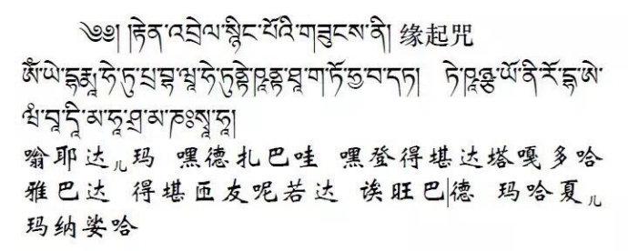 缘起咒是一切善逝的法身,谁见缘起即见善逝。哪怕是将它放在油柑子大的小塔当中,今生中也能生起梵天福德。