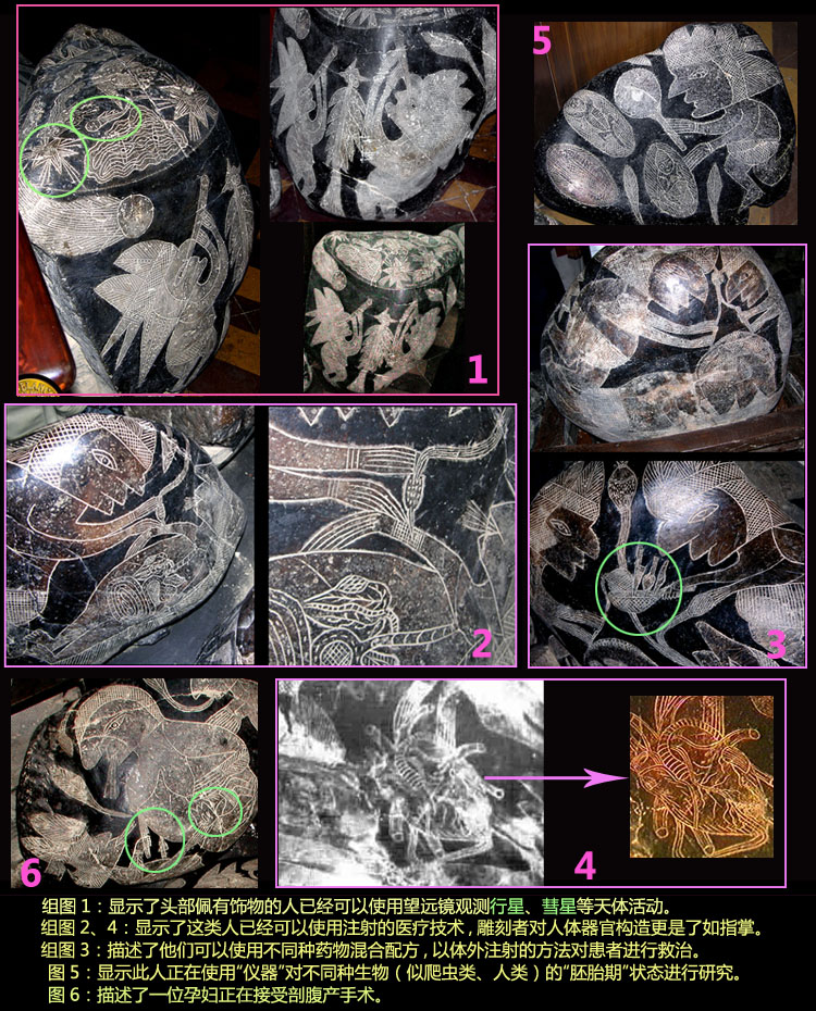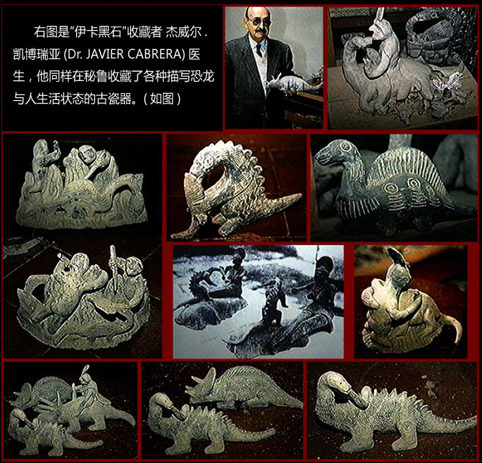 “伊卡石头”或“伊卡黑石”在秘鲁小城伊卡被发现,石头成分被鉴定为(无机物)“安山岩”,而且无法用碳-14追踪考证其历史年限。石头雕有各种画面,包括恐龙(攻击或帮助人类),先进的技术、医学手术、地图,甚至雕有“色情画面”。