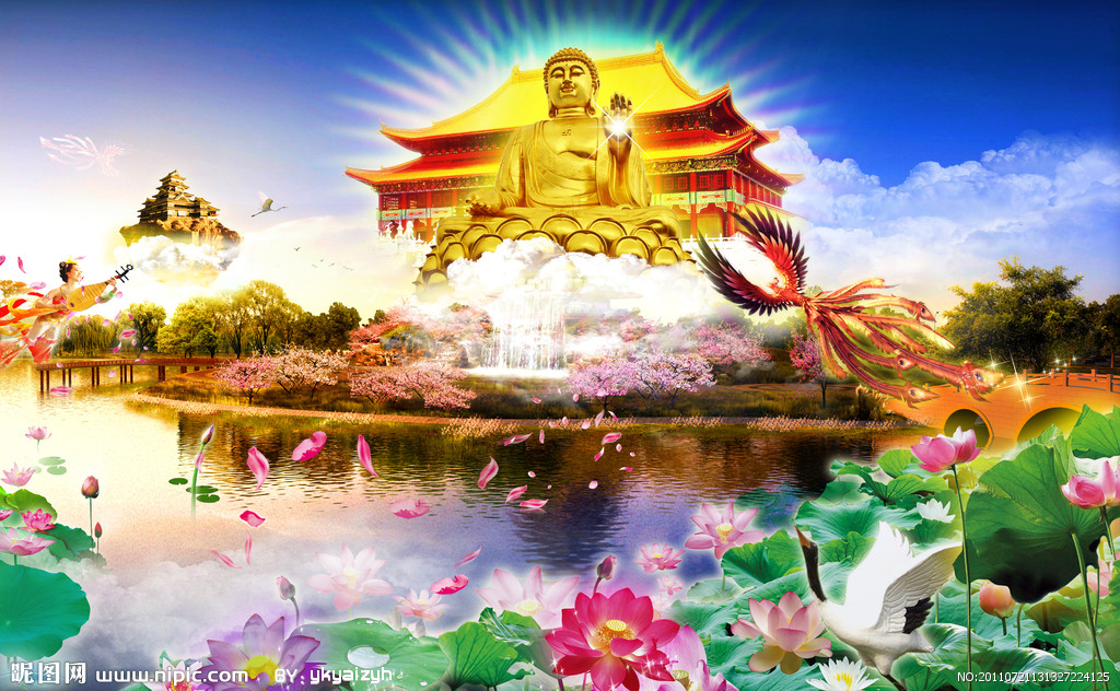 在佛教中的国土,又称净土,是所有修佛弟子希望达到的最高境界,对信众具有无上的吸引力。佛教以“严净佛土”、“净佛国土”、“庄严净土”来表达对这个极乐世界的最高标准——即国土要净。