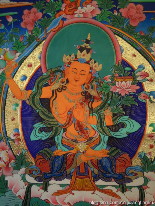 菩萨身相之所以用橘色,因为橘色代表的是太阳快要出来时,天空中的光芒。也代表从这个颜色后,大地会有光明。为了方便解说,我们说文殊菩萨是橘色的。我们的本性就是文殊师利,但是我们总是对之视而不见。就像我们的眼睫毛,太近了,以至我们总是找不到他。因为我们没有认出文殊师利,而他又与我们如此之近,以致我们有各种各样的染污。我们忘记本性所在,我们创造出各种分类,各种标签--主题推荐