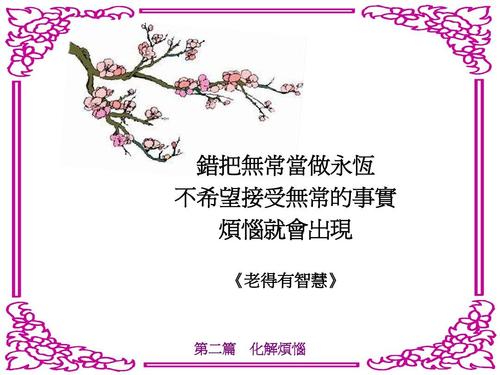 唐朝永嘉玄觉禅师曾说:“生死事大,无常迅速。”尽管目前的生活是如此美好,无常是终有一天会到来的,因为这是生命的实相!所以我们必须面对它、认识它、了解它、接受它,如此才能深入体悟佛法的真义,获得真正的解脱与自在。既然“无常”时时刻刻都在我们身边,那么无常的意义何在?
