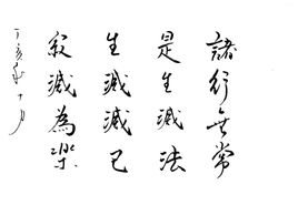 “无常”,在佛教中作为三法印(诸行无常,诸法无我,涅槃寂静)之一,指一切有为法,即种种因缘所生的万物,无论是物质的“色法”,还是精神的“心法”,都是生灭变化,不可常住的。从时间的角度,可分为“相续无常”和“刹那无常”。相续无常,指有为法在一期相续过程中,必有生、住、异、灭四个阶段,与其生前与灭后相比来看,似乎具有某种稳定性,这尤以人的生死最为明显,这也是人们普遍能体验到的一种“无常”。而刹那无常,是指在刹那之间也有生、住、异、灭的变化。从理论上说,这是对时间无限分割的必然结论;从现实中来说,则往往被人所忽略,但若仔细省察,也不难发现,如观察我们自己的念头时,会发现似乎有一束意念正在迅速飞逝,没有片刻的停留;当今科学对“微观粒子”运动速度的观测结果,也可以从某个角度证明物质世界的刹那生灭。