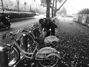 杨立成一般每天要花两到三个小时检查维修公共自行车