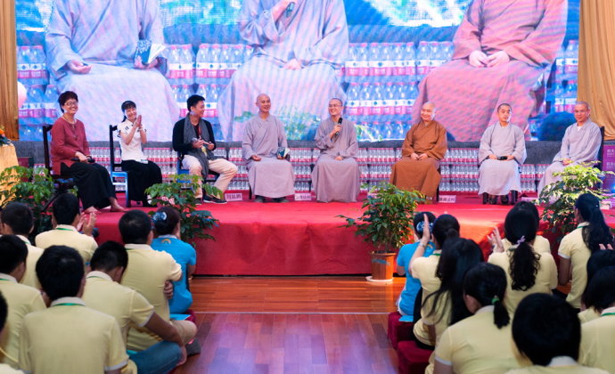 满霖法师:我补充一下,用一个时髦的说法,你们TOO YOUNG TOO SIMIPLE。你们可以是错的,你们不一定要去走别人所设定的正确道路。一个健康的社会,包括东西方文化,我们不一定要有对立的心态,不一定要东风压倒西风。正常健康的社会应该是多元价值观。(我们现在在)未来领袖夏令营,领袖的定义不一定是指某项事业的成功,每个人做好该做的事都是伟大的成就。某种程度上,能发现一草一叶的美好,也是一种巨大能力。