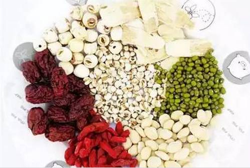 主要成份:绿豆50克+扁豆50克+莲子50克+薏米50克+大枣30克+枸杞10克 (是1个人5天的用量)