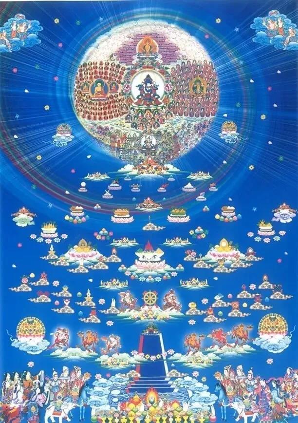索达吉堪布:人死后的几天时间里,不是所有人面前都能显现寂猛坛城的如来本尊像。有些人虽然显现了,但这种显现如同流星般瞬间即逝,认识不了;还有些人,因为不了解这个法门,以另外形象显现了;而业力深重的人,则看到自己从前所杀的生命或其他景象,见不到佛尊。