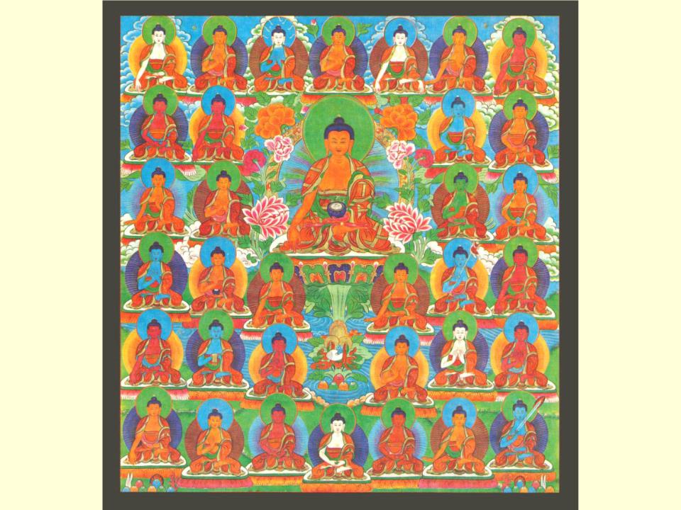 以上为三十五佛的形相与持诵佛号的功德,持诵诸佛佛号的功德,与所能消除的罪业,看似有所不同;然此,并非诸佛的证量与功德有所差别,而是由于诸佛往昔的愿力,与对应众生的根器与因缘,而有所差异。
