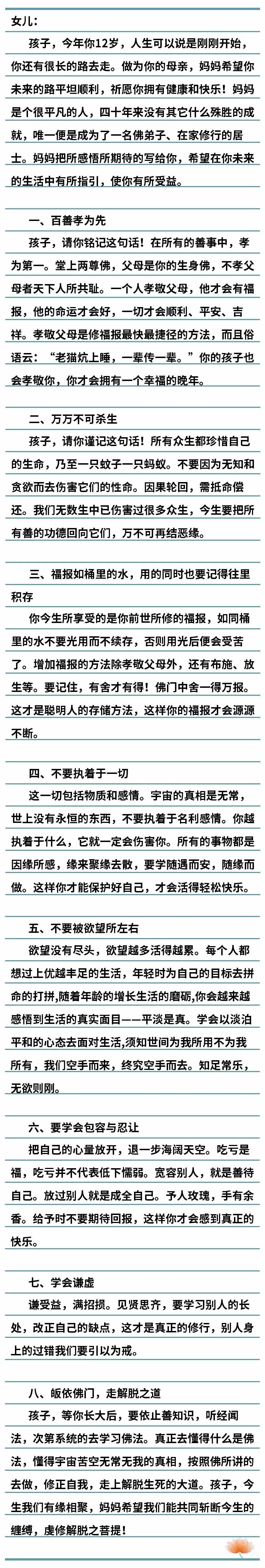 “望子成龙,望女成凤”是天下所有父母的愿望。在如今以分数衡量一切的时代,更要用德行去成就孩子。给孩子留座金山银山,不如教会她如何积累增长自己的德行和福报。