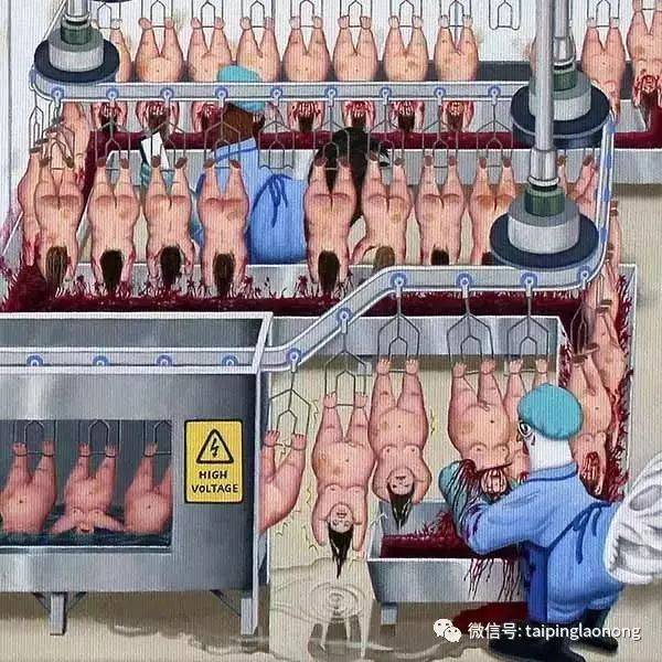 “那些被倒挂在铁钩上砍头流血开膛破腹的,是生命,无助的生命。”
