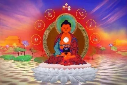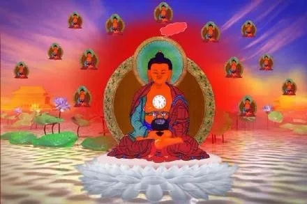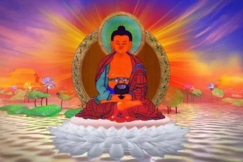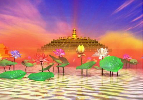 念完心咒之后,观想自身阿弥陀佛、极乐世界