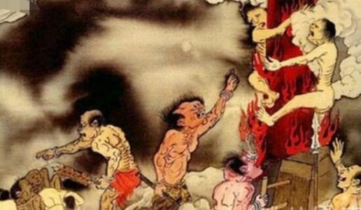 这种抱柱地狱,又叫炮烙地狱,就是一个烧红的铜柱子,人抱到这柱子上,就脱离不开它。什么人会堕这种地狱呢?就是好淫乱、好奸淫的人,在生的时候犯的淫业太多了,男人犯的太多,女人也犯的太多。