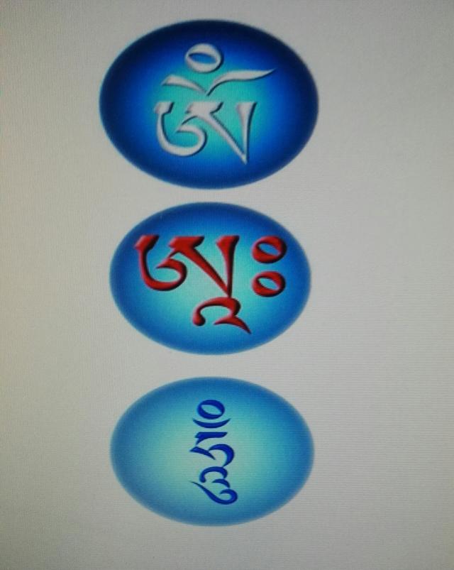“嗡”:象征五部佛的种子字、报身佛的心咒